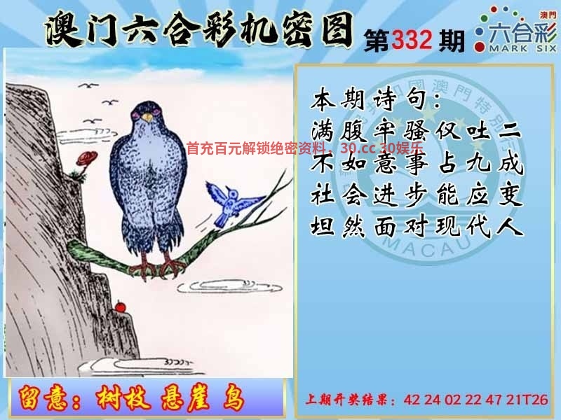 | 332期【解机密图】:开(龙26) 满腹牢骚仅吐二,不如意事占九成,社会进步能应变,坦然面对现代人。 【解】:满腹牢骚仅吐二可解凶丑的生肖,社会进步能应变可解阴肖的生肖。 【综合取特】狗鼠蛇鸡羊龙 |